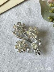 - イギリスのビンテージアクセサリー、きらきら輝くお花のモチーフのブローチ (h-1468-z)