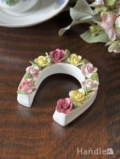 - 午年の2026年にピッタリのアンティーク陶花、馬蹄型のコールポートの卓上花 (m-9631-z)