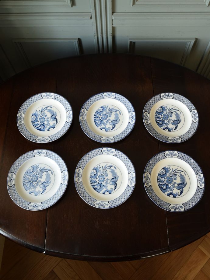 当時の英国の人たちの憧れだった東洋柄の陶磁器は、手作りなので少しずつ色の濃淡が違っているところもアンティークらしさです。
