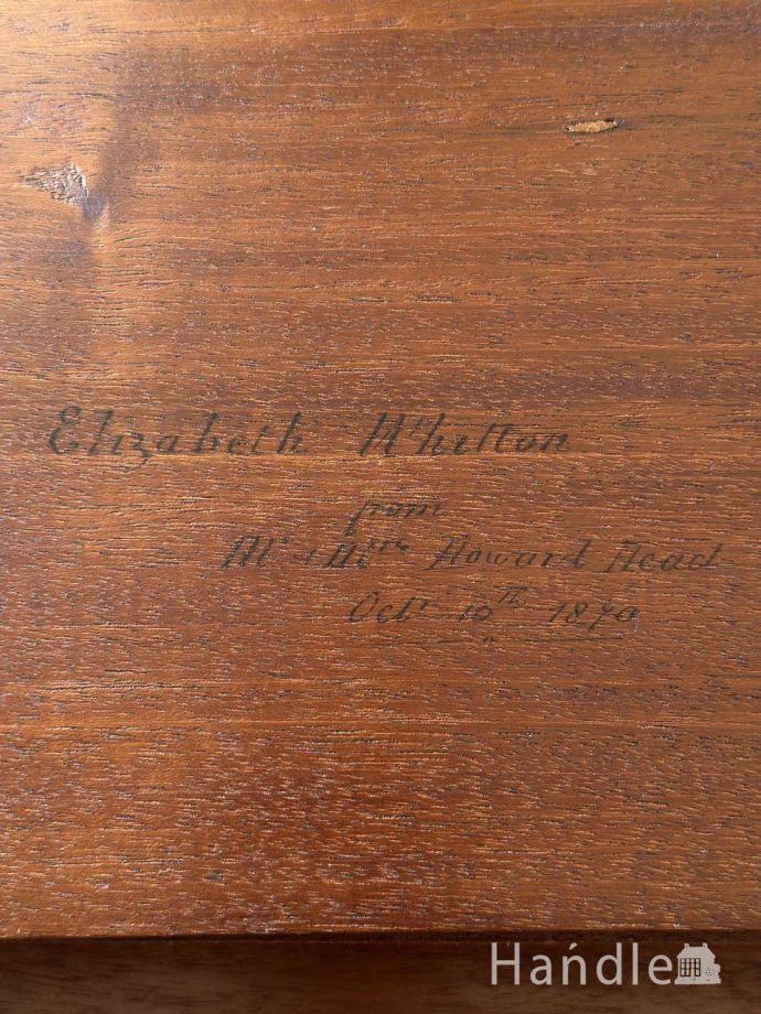 「Elizabeth」と「Oct 10, 1890」の文字は分かるんですが、他が読めなくて、何に使われていたものか分からないのが残念・・・(涙)
