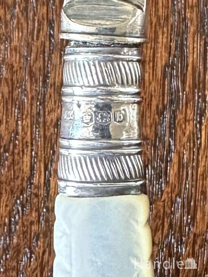 スターリングシルバーのアンティークナイフ、マザーオブパールのバターナイフ (商品番号 m-7704-z)