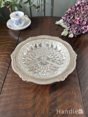 - 仕切りが付いたアンティークガラスのお皿、シルバープレート付きのプレスドグラス (k-6088-z)