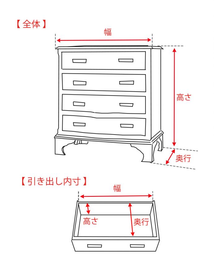 【 引き出し 】 (1段目)幅41×奥行き28~31×高さ8cm (2段目)幅41×奥行き28~31×高さ8cm (3段目)幅41×奥行き28~31×高さ11cm (4段目)幅41×奥行き28~31×高さ11cm |