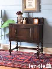 - ツイスト脚とビーディングの装飾が美しい、英国アンティークのカッコいいキャビネット (q-3392-f)