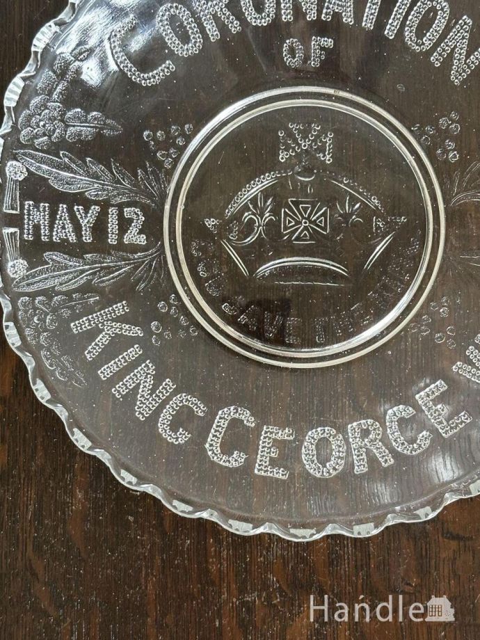 1937年ジョージ6世の戴冠記念のプレート、アンティークガラスのコロネーションプレート (商品番号 m-8611-z)