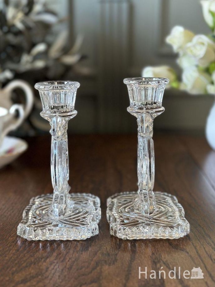 アンティークガラスのキャンドルスタンド - もともとはドレッシングセットとしてパフケースと一緒にトレイの上に必ずセッティングされていたキャンドルスタンド。お化粧する時の必須アイテムでした。