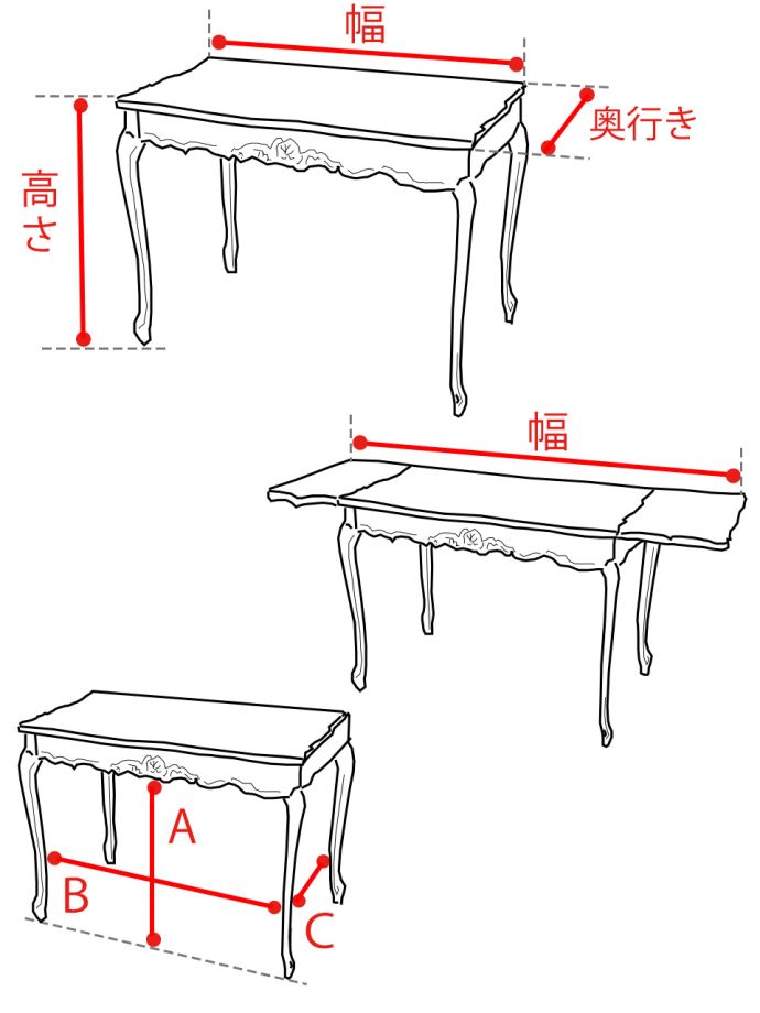 フランスらしい優美な装飾 - 彫込まれた装飾もフランスの家具らしく優雅なデザイン。どこに置いても楽しんでいただけます。