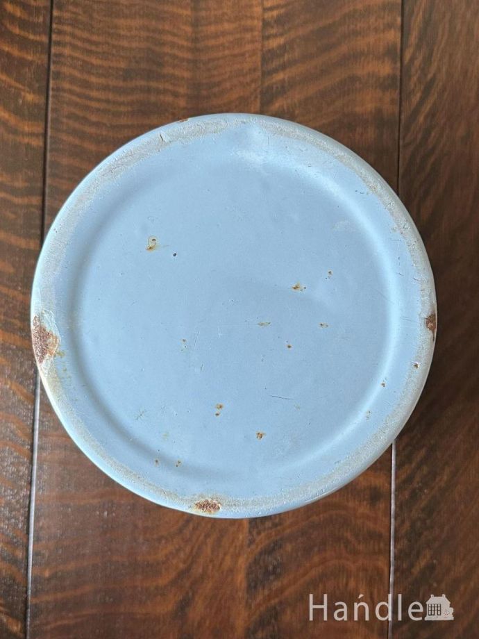 ブルー色のホウロウが可愛いフラワー缶、フランスから届いたアンティークのキャニスター (商品番号 m-9453-z)