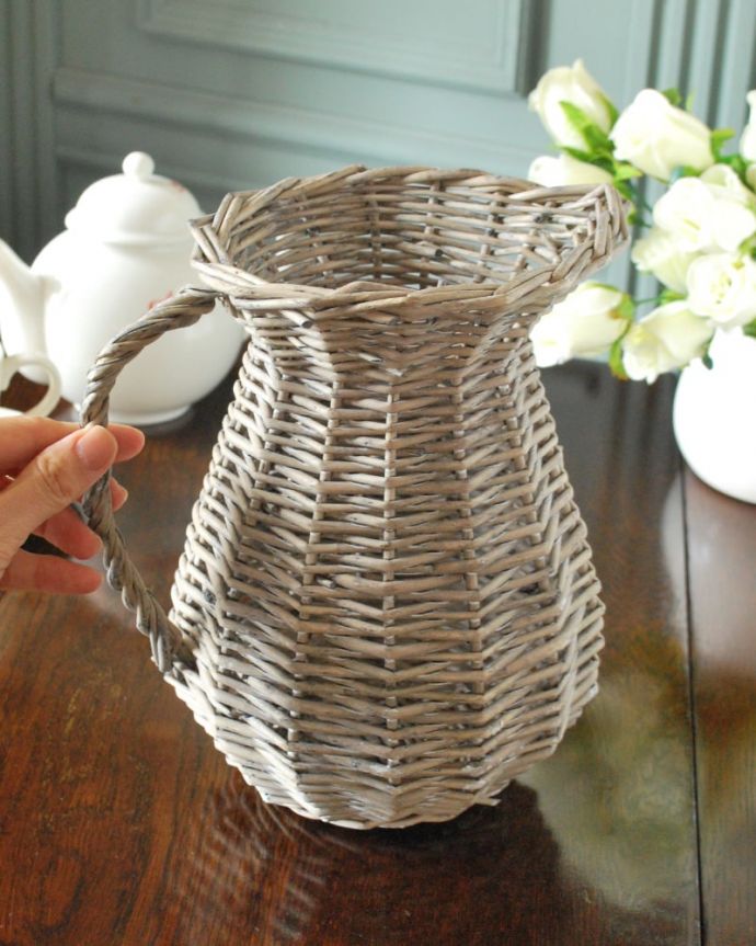 お部屋を彩るインテリア雑貨、ピッチャー型のウィローバスケット (商品番号 n12-378)