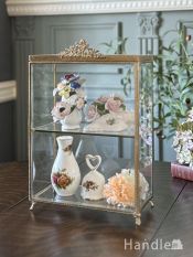 - アンティーク調に仕上げた真鍮製のジュエリーボックス,おしゃれなガラスの小物入れ(2段タイプ) (n21-138)