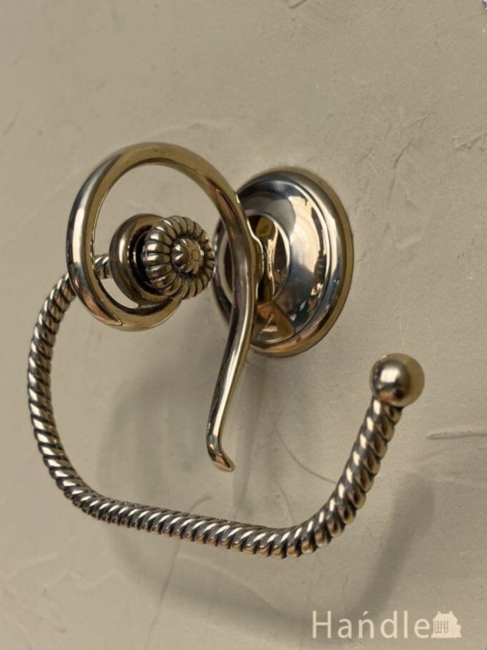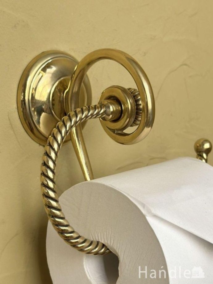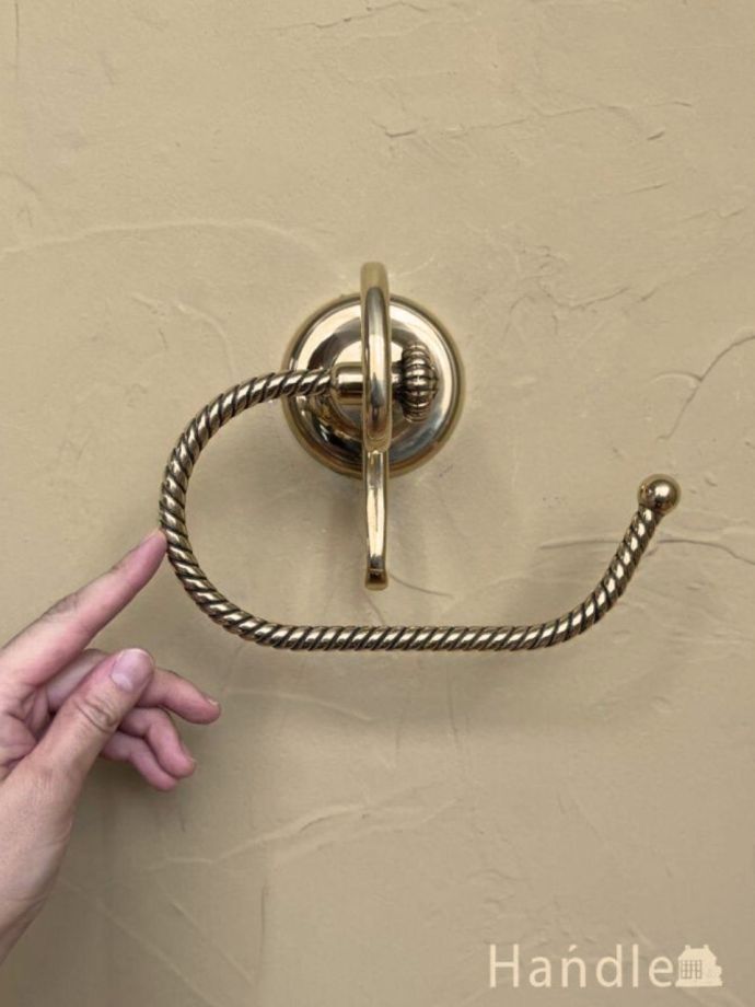 イタリアから届いた高級感漂うペーパーホルダー、真鍮製のおしゃれなロープデザインのタオルバー (商品番号 n21-002)