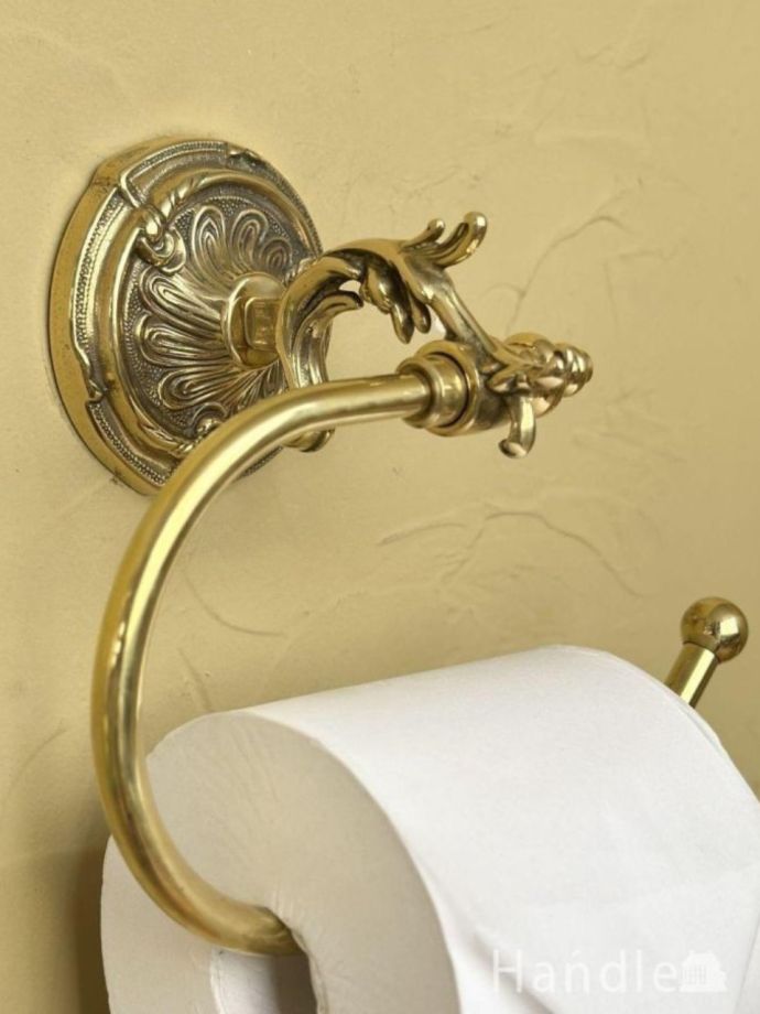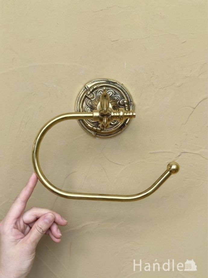 植物の美しいモチーフが模られた真鍮製のペーパーホルダー、イタリアから届いたアンティーク調のおしゃれなタオルハンガー (商品番号 n21-004)
