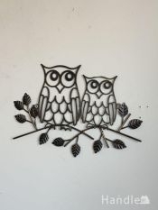 - 2羽のフクロウに癒されるウォールデコレーション、夫婦のふくろうの表情が可愛い壁掛けの飾り (n22-289)