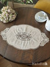 - フランスアンティーク風のおしゃれなドイリー、華やかな刺繍が入った可愛いレース(オフホワイト) (n20-423)
