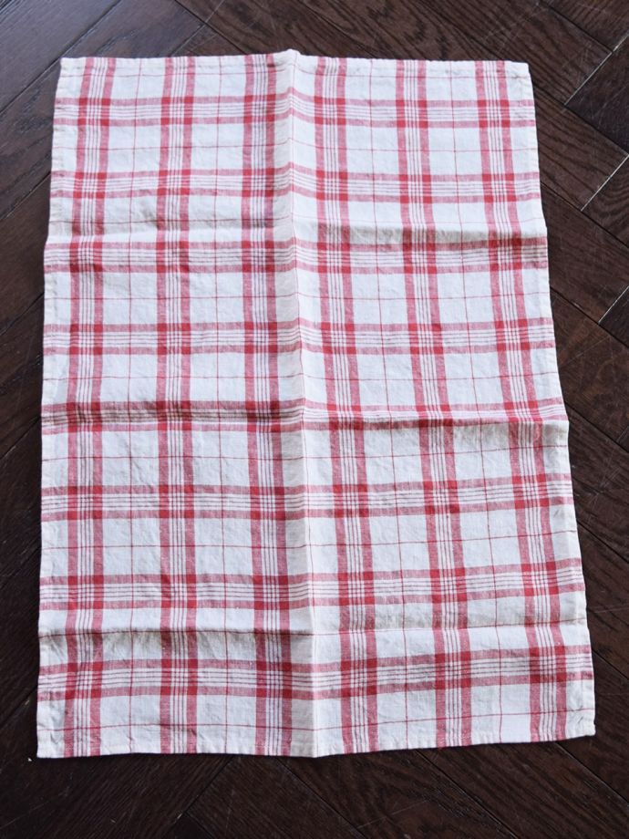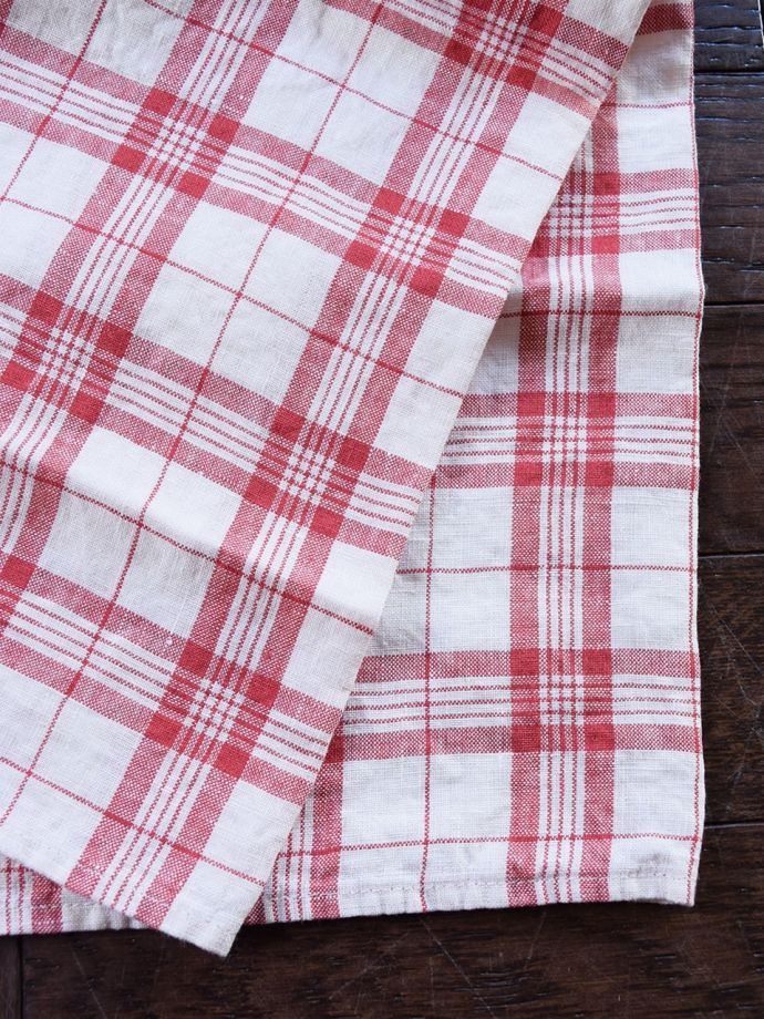 使うほどに柔らかくなるリネン、いろいろ便利に使えるリネンのキッチンクロス(レッド・チェック) (商品番号 n9-064)
