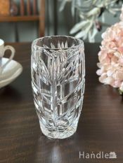 - 英国アンティークガラスのおしゃれな花びん、プレスドグラスの美しいフラワーベース (pg-8330)