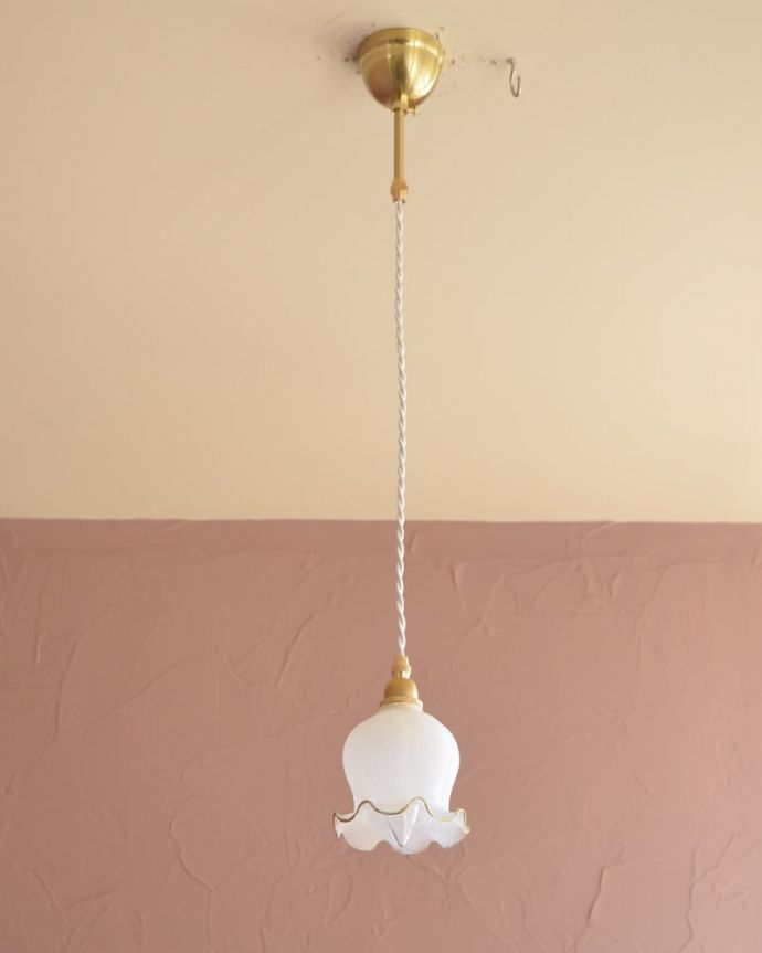 アンティーク家具Handle > 照明おしゃれ > ペンダントライト > ペンダント照明 > すずらんのお花の形をした可愛いガラスのペンダントライトセット(コード付き・E17シャンデリア球・ギャラリーなし)
