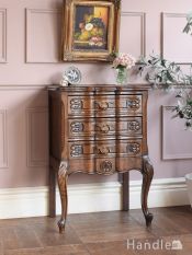 - スマートなサイズのアンティークフレンチチェスト、どこにでも置ける猫脚のスモール4段チェスト (j-3662-f)