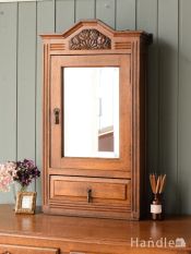 - お花の彫刻が可愛いミラー付きのウォールキャビネット、フランスで見つけたアンティークの壁付け家具 (z-317-f)