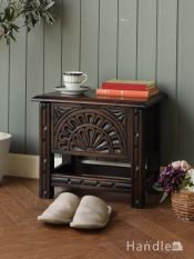 - 収納も出来るおしゃれなアンティークのテーブル、イギリスから届いたルネットの彫りが入ったサイドテーブル (k-3380-f)