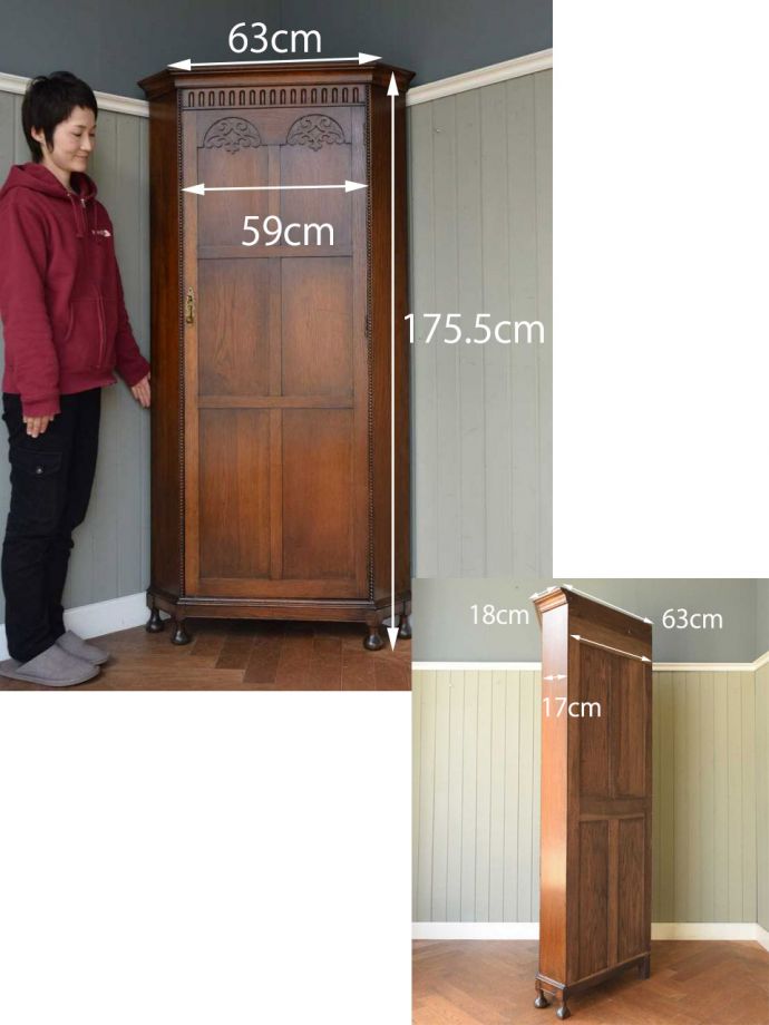 あまり見かけない、お部屋の角に置いて使えるキャビネット、アンティークのホールローブがイギリスから到着しました。