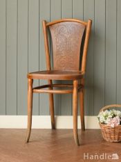 - 座面の模様が美しい曲げ木のアンティーク椅子、背もたれがユーバックになったベントウッドチェア (k-1941-c)