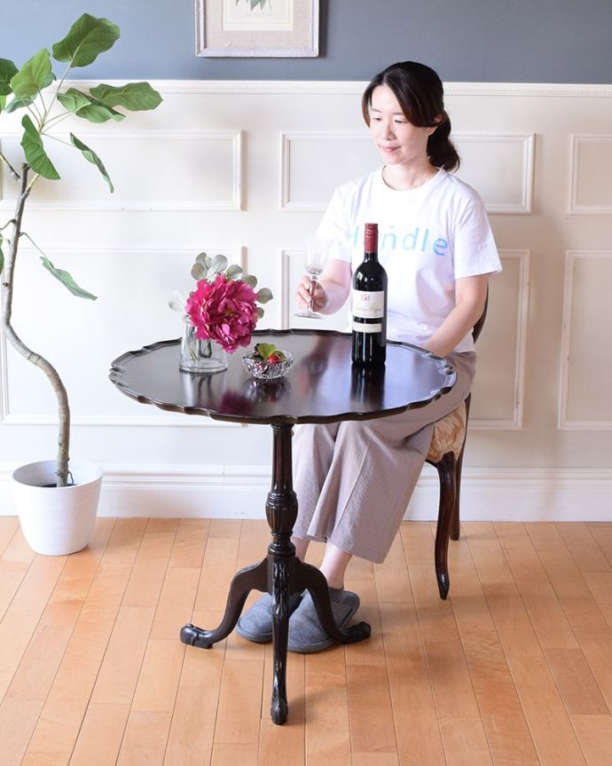 2つの使い方が楽しめる、めずらしいティルトトップテーブル。開いたり閉じたり便利に使って楽しんで下さい。※アンティークは1点ものです。他の方がカートに入れてSOLD OUTになった時点で同じものはご準備できませんので、ご了承下さい。