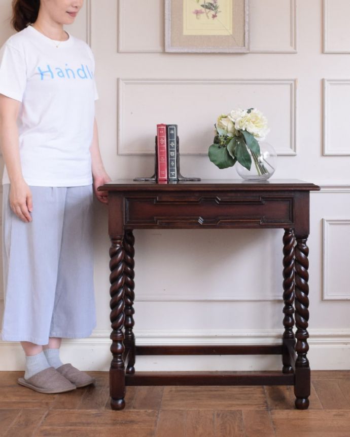 クルックルッとしなやかに巻かれた女性らしいデザインが印象的なツイスト脚。英国アンティークらしい定番のデザインは初めての方にもおススメの間違いのない美しさです。