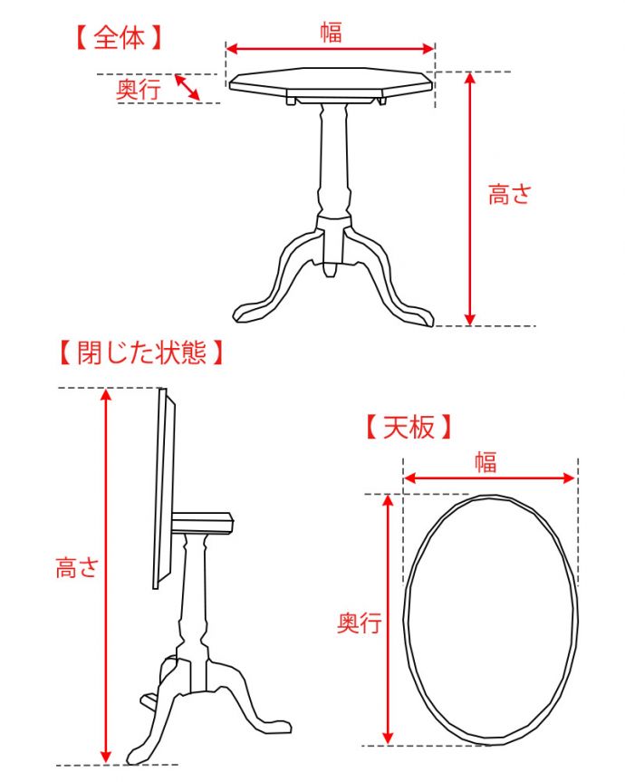 - トライポッド足の美しいアンティークテーブル、使いやすいサイズのティーテーブル (i-231-f)