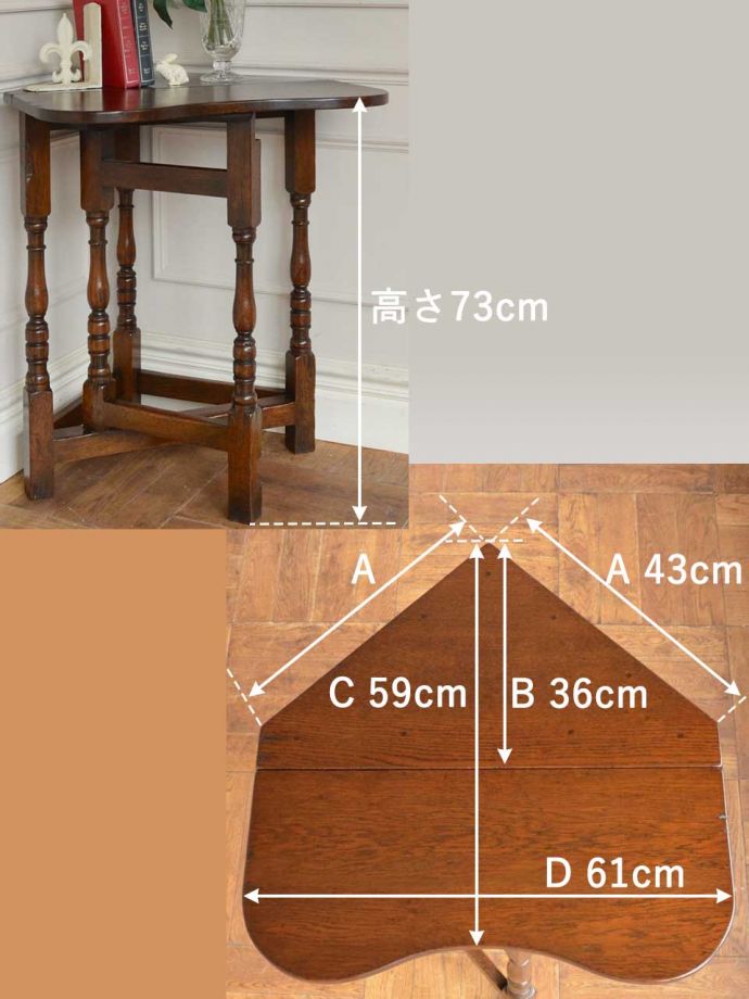イギリスのアンティーク家具、コーナーに置ける伸長式のゲートレッグテーブル (商品番号 q-2629-f)