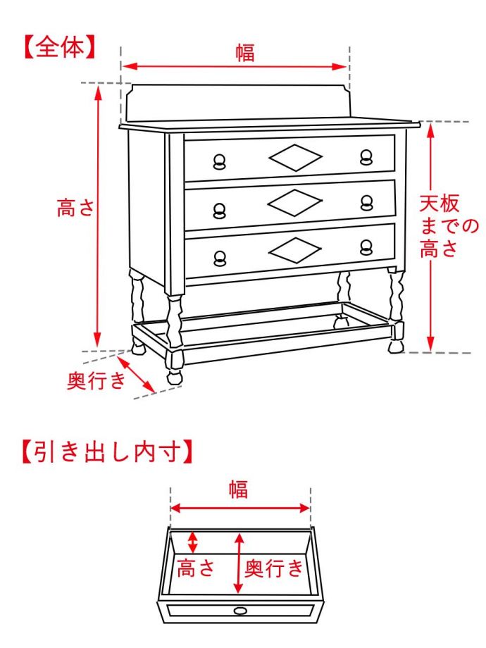 【 天板までの高さ 】92cm 【 引き出し 】 (1段目)幅90×奥行き35×高さ13cm (2段目)幅90×奥行き35×高さ16cm (3段目)幅90×奥行き35×高さ18cm |
