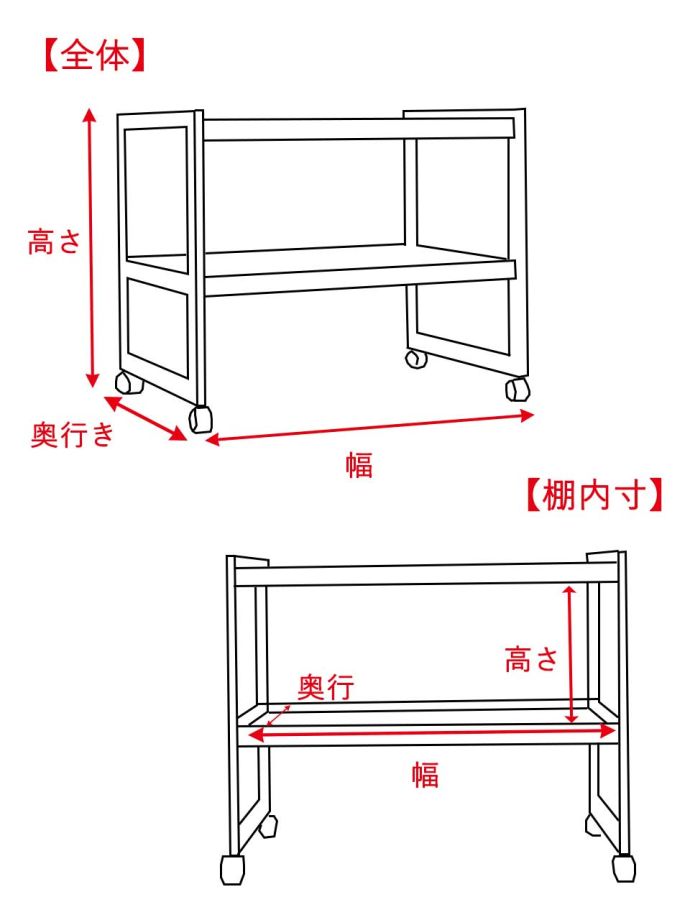 【 全体 】幅61×奥行41×高さ74cm 【 棚内寸 】 (1段目)幅58×奥行37cm (2段目)幅58×奥行37×高さ41cm |