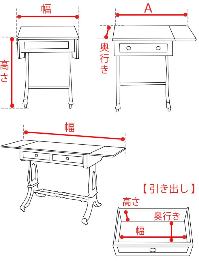 細々したものを収納できる引出しまでついていて、おススメのポイントが盛りだくさんのアンティークテーブル。