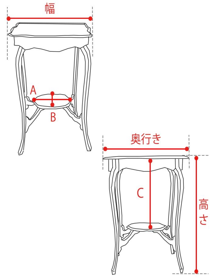 オケージョナルテーブルの側面 - アンティークなので経年変化によるキズはありますが、専門の職人が修復した家具は360度キレイです。