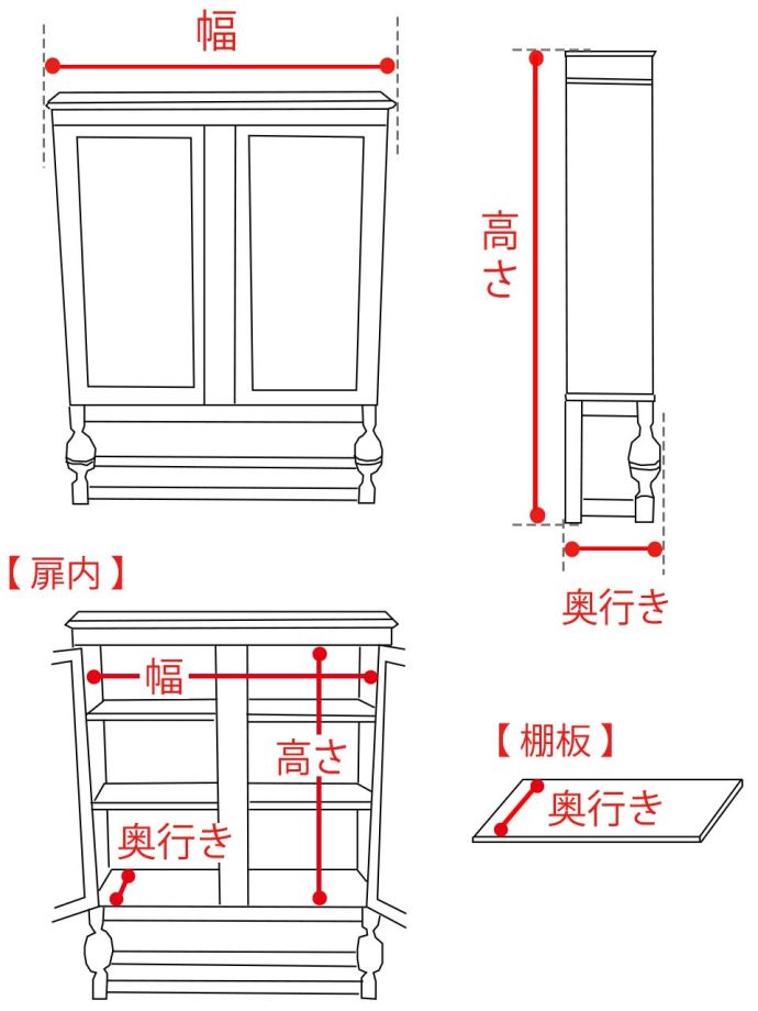 【 扉内 】幅98×奥行き23×高さ96cm 【 棚板 】高さ調整可能 奥行き21cm 【左右引き出し】幅42×奥行き20×高さ7cm |