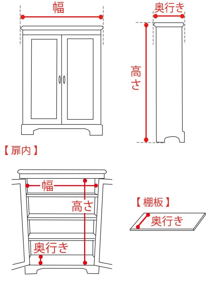 【 扉内 】幅87×奥行き25×高さ95cm 【 棚板 】高さ調整可能 奥行き23cm |