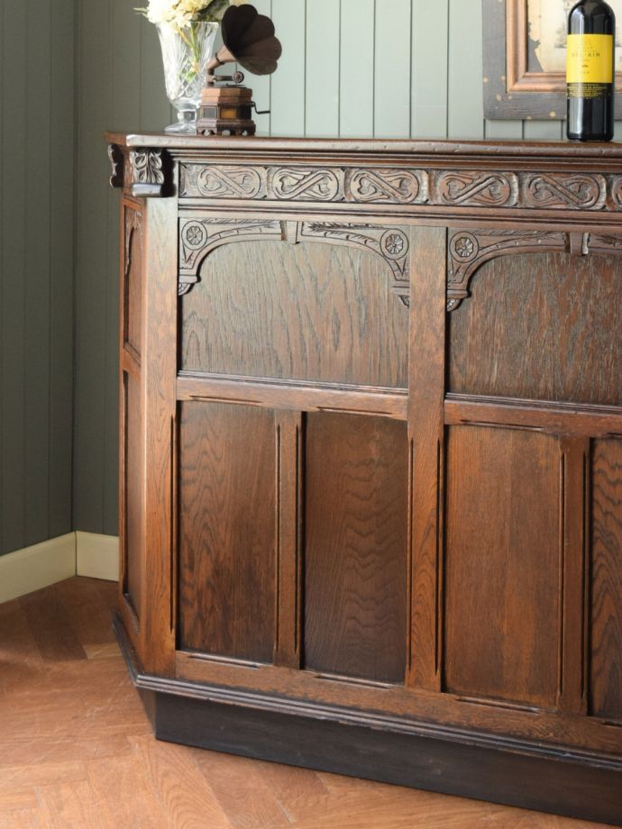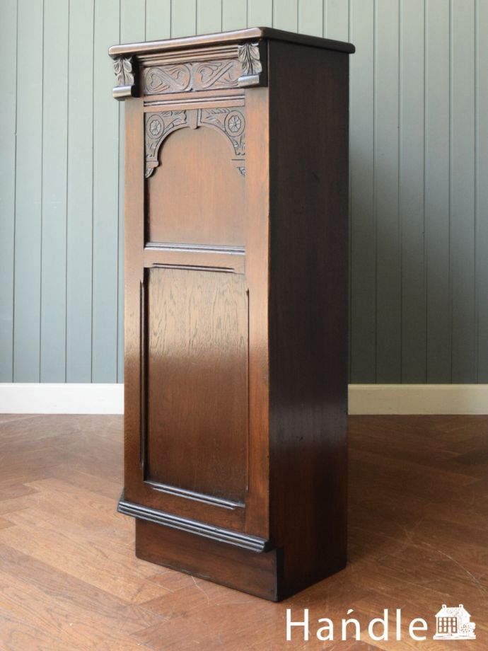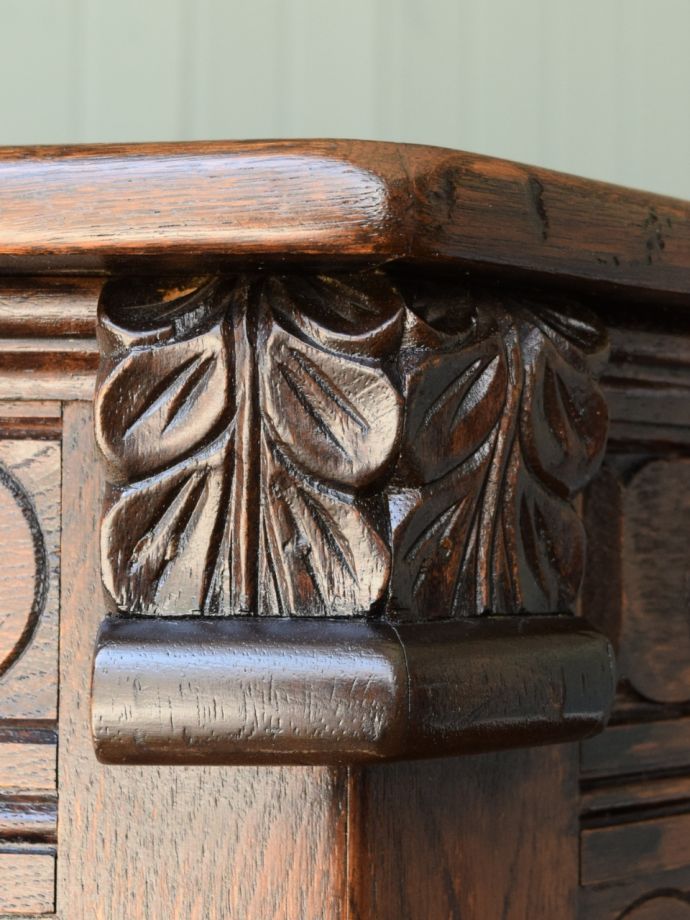 英国アンティークのカウンター 、美しいお花の彫が入ったオーク材のキャビネット (商品番号 q-3237-f)