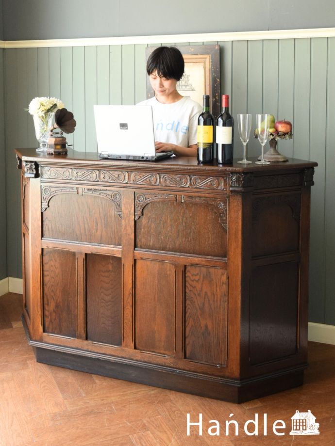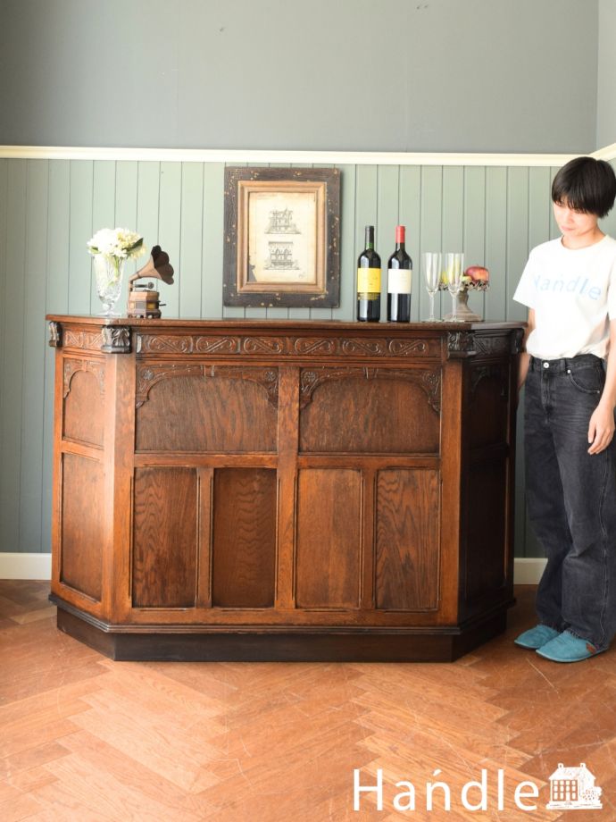 サイズもそれほど大きくないので、お店ではもちろん、お家の顔にもなっちゃうおしゃれなカウンターで、パブにいる英国紳士気分を楽しんでみませんか?※アンティークは1点ものです。他の方がカートに入れてSOLD OUTになった時点で同じものはご準備できませんので、ご了承下さい。