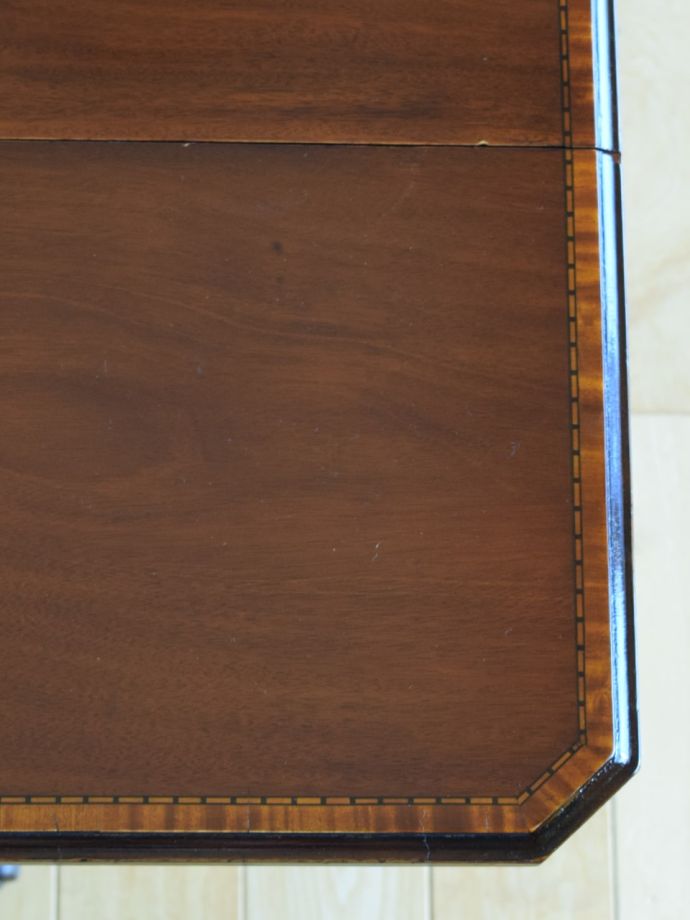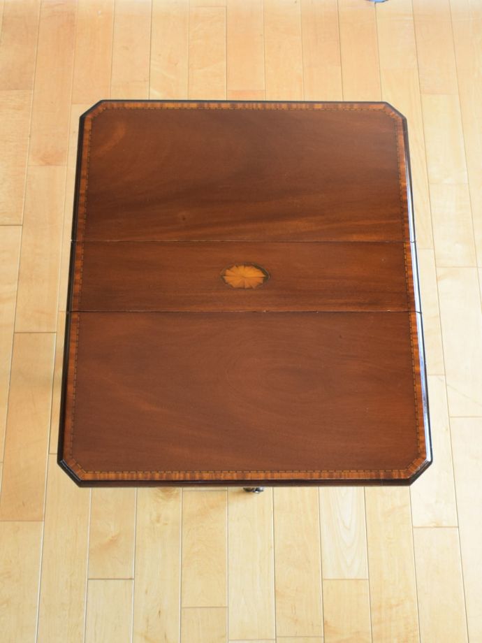 畳んだ時は、すっごく細長いテーブルとして使えるんだけれど、さりげなく真ん中の部分に象嵌が入っていて高級な雰囲気が漂うところがアンティークらしさ☆