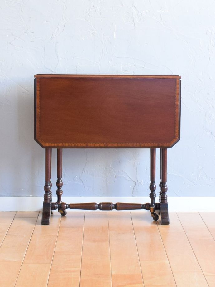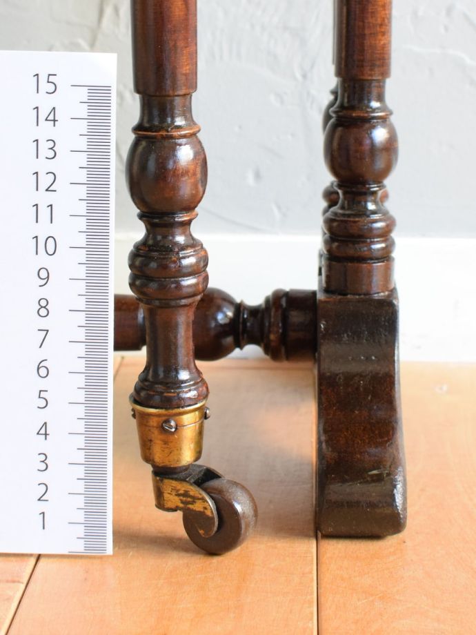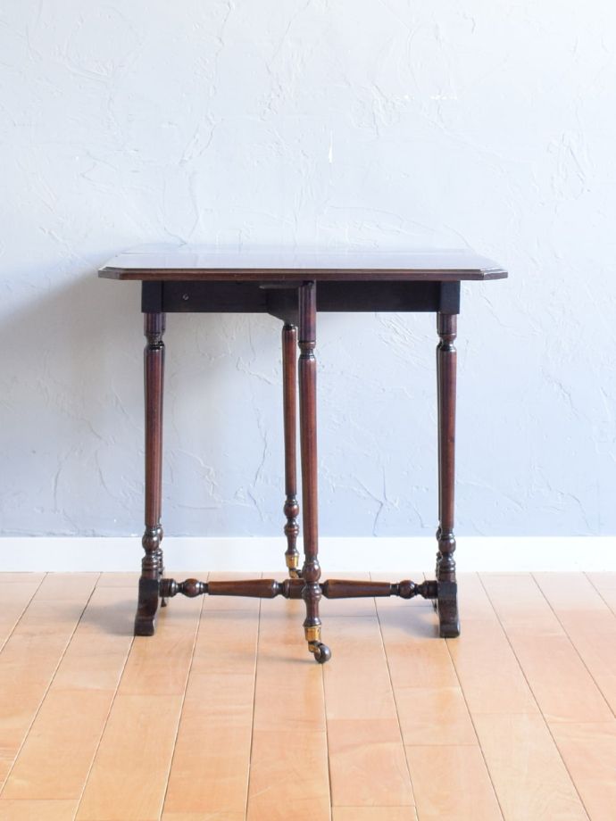 ヴィクトリア女王の親友で女官長だったサザーランド公爵夫人がオーダーしたことから名前が付けられたゲートレッグテーブルなんですが、この子はサイズもコンパクトなので初めてのアンティークにもおススメです。