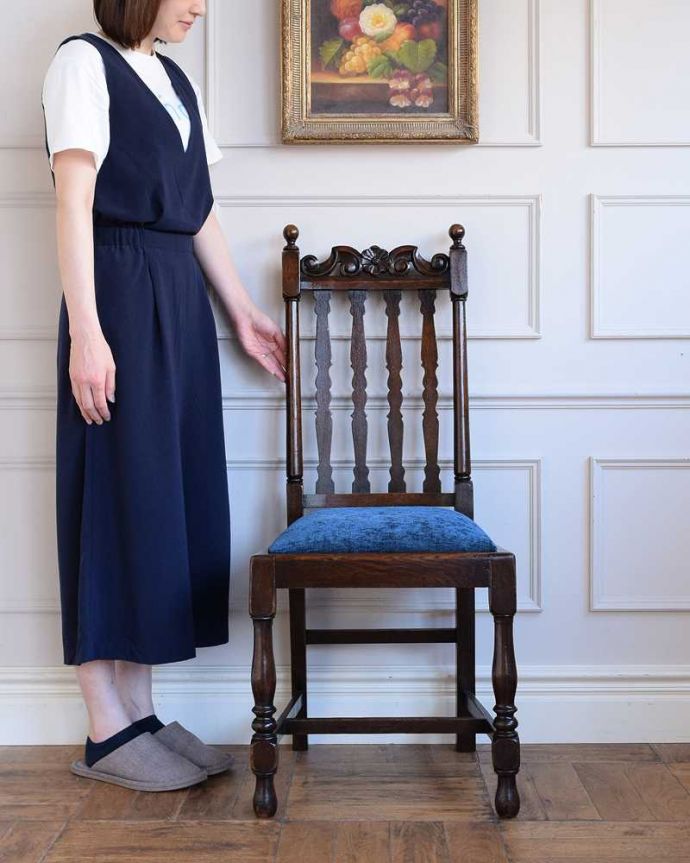 英国らしい重厚感あふれるアンティークチェアは流行を追わず、ずっと使い続けられるデザインです。