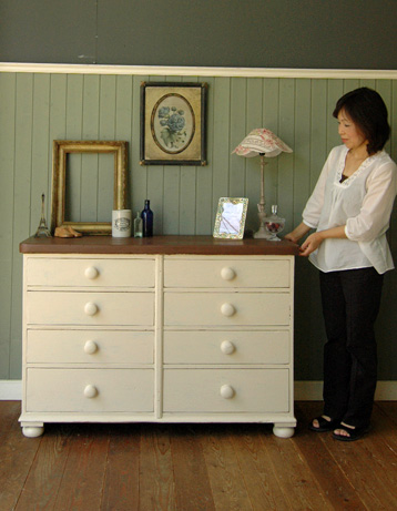 天板もブラウンのペイントがやさしい感じで、見てよし!使ってよし!!の、とっても可愛いドロワーズです。