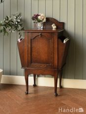 - アンティークのマガジンラック付きコールボックス、イギリスから届いたオーク材のめずらしいサイドキャビネット (q-3408-f)