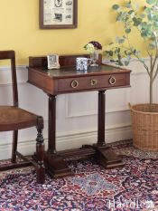 - とってもめずらしいデザインのアンティークデスク、イギリスから届いたマホガニー材のおしゃれな書斎机 (q-3381-f)