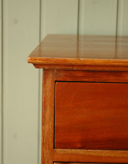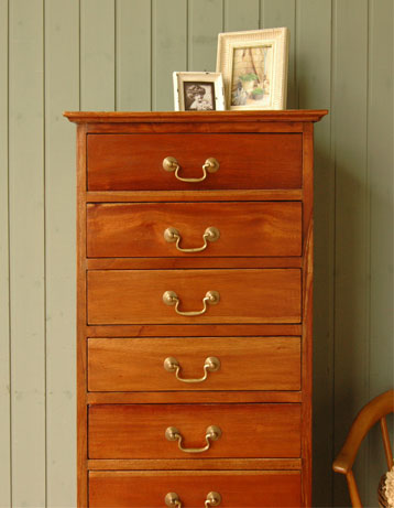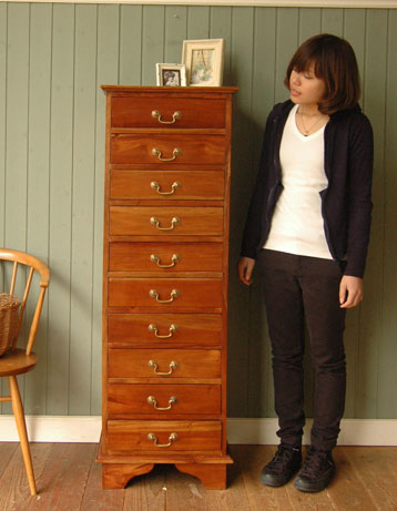 幅や奥行がスッキリしているのでちょっとしたスペースに収まる優れもの。高級なマホガニー材の風合いが、リッチな気分させてくれます。