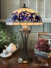 - アンティーク調のステンドグラスランプ、ブルーのシェードが美しい2灯タイプのテーブルライト (tl-0206)