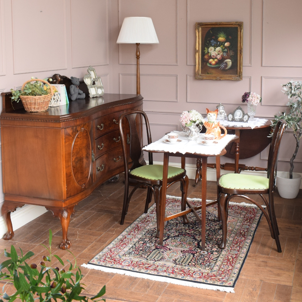英国の伝統的な家具でトータルコーディネイトした中に、ポンッとシンプルなアーコールの1Pを投入してみました。 お高く留まっている所に、ふっと気が抜けるデザインを投入して色気を出した感じ(笑) 小さなダイニングにあわせたベントウッドチェアも、ちょっと粋な雰囲気でおシャレ感たっぷりデス。