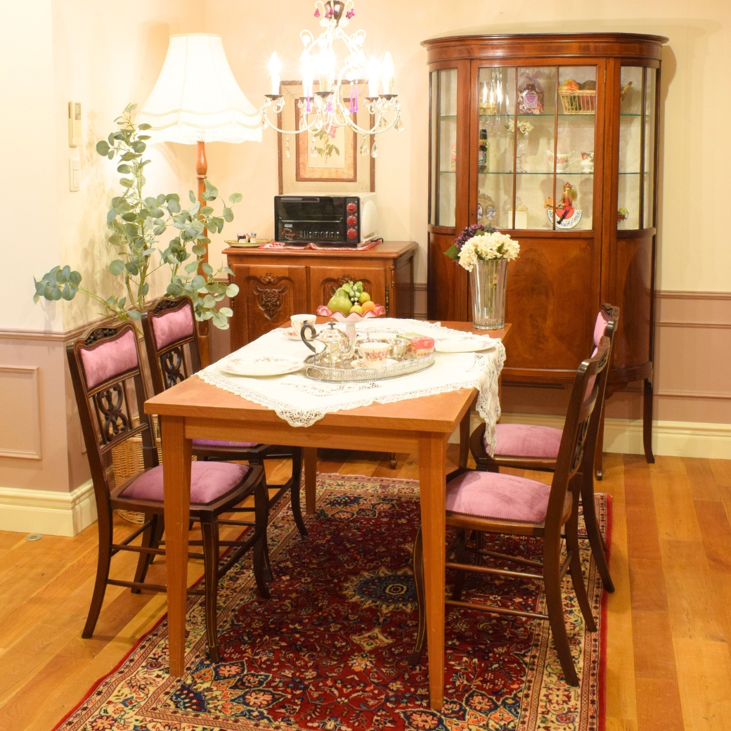 アンティーク風のテーブルにアンティーク風チェアの組み合わせ