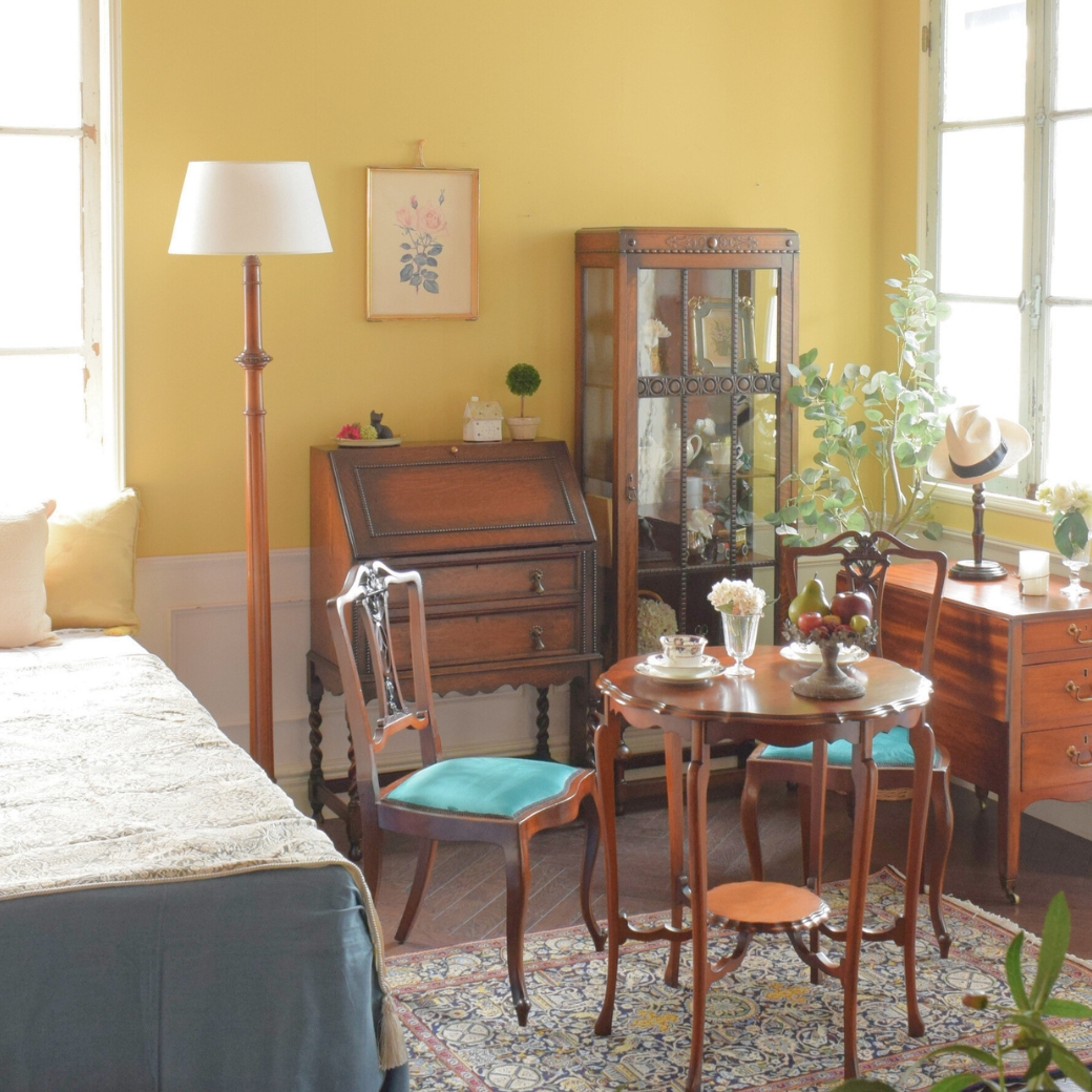 朝散歩を終えてゆっくりくつろぐクラシックスタイルの寝室