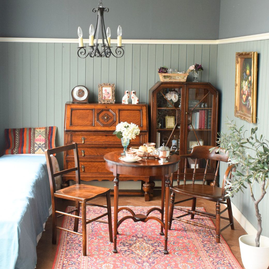 お弁当を作ってホッと一息つく英国アンティークの個室
